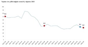 TÜİK, Ağustos 2025 verilerine göre sanayi, inşaat, ticaret ve hizmet sektörlerinde ciro endeksinin yıllık %36,7 arttığını açıkladı. Ticaret satış hacmi de aynı dönemde %6,9 artış gösterdi.
