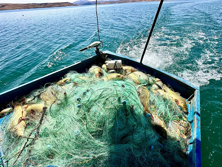 Babasıyla başladığı işi onun ölümünden sonra tek başına devam ettiren Demir, sabahın erken saatleri ile gece vakitlerinde 2 bin metrelik ağlarını göle bırakıyor.