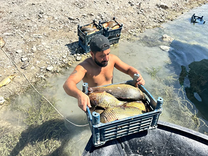 Çemişgezek ilçesinde Keban Baraj Gölü’nde çocuk yaşta başladığı balıkçılığı sürdüren Onur Ulaş Demir, kavurucu sıcakta günün büyük kısmını teknede geçirerek balık avlıyor.